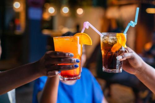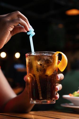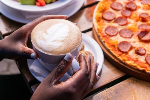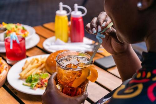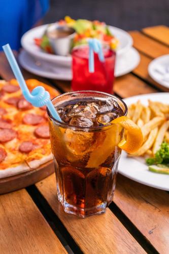 Guests can enjoy a meal and a drink at the on-site restaurant and bar.