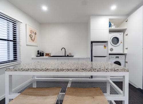 Помешкання Parrots Nest - 2 Bedroom містить спальні (2), міні-кухню з холодильником та тостером, пральну машину та ванні кімнати (1). Тут для зручності гостей є телевізор.