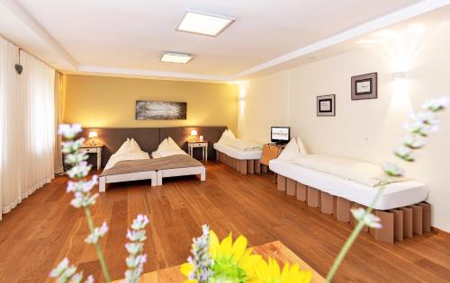 Затишний сімейний гостьовий будинок Winzerhof має власну винну таверну та ферму в селищі Ахау, всього за декілька кілометрів на південь від Відня.