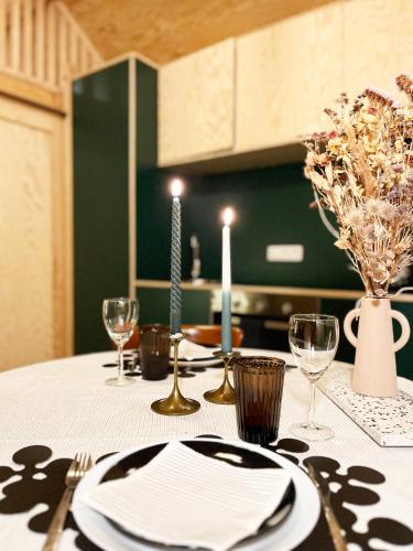Це помешкання (шале) складається зі спалень (1), вітальнi, повністю обладнаної кухні з холодильником і кавоваркою, а також ванних кімнат (1) з душем та феном. У цьому помешканні до розпорядження гостей постільна білизна та рушники.