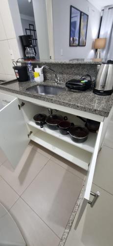 З помешкання flat um quarto completo excelente para grandes temporadas відкривається чудовий вид на сад. До послуг гостей відкритий плавальний басейн, фітнес-центр та сад. Приблизно за 22 км звідси можна оглянути пам'ятку "Центральний парк Бразилії". Гості можуть поплавати у приватному басейні. Автомобіль можна залишити на безкоштовній приватній парковці.