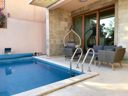 Це помешкання (вілла) з кондиціонером складається зі спалень (3) та повністю обладнаної кухні. З цього помешкання з прямим виходом на терасу відкривається гарний вид на басейн. Тут є постільна білизна та рушники.