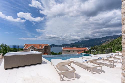 У помешканні Belsize Villas, яке розташовано в місті Будва, гостям пропонують номери з чудовим видом на басейн. За 1,9 км звідси можна оглянути пам'ятку "Пляж Дробні-Пієсак", а за 1,9 км – пам'ятку "Пляж Светі-Стефан". Тут до послуг гостей безкоштовний Wi-Fi, сад з цілорічним відкритим басейном, а також сауна і гідромасажна ванна. У помешканні гостям пропонують номери з кондиціонером, які обладнано гідромасажною ванною.