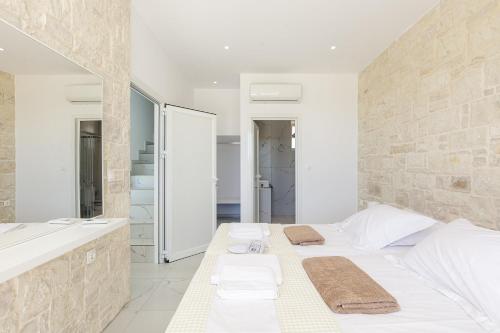 У помешканні Mythos villas номери мають терасу та містять зону для відпочинку, повністю обладнану кухню з холодильником і посудомийною машиною та окрему ванну кімнату з душем і безкоштовними туалетно-косметичними засобами. У кожному з них встановлено телевізор із плоским екраном. Тут для зручності гостей є духовка, плита, тостер, а також кавоварка та чайник.