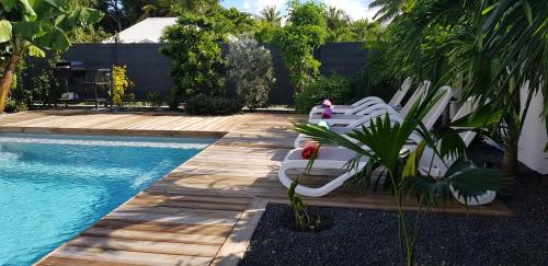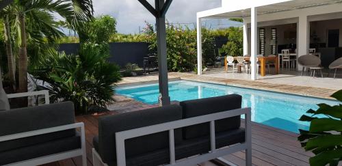 Помешкання Villas du Marangua розташовано в місті Сен-Франсуа, за 1,7 км від пам'ятки "Raisins Clairs Beach". До послуг гостей номери з безкоштовним Wi-Fi, кондиціонером та доступом до саду з цілорічним відкритим басейном.