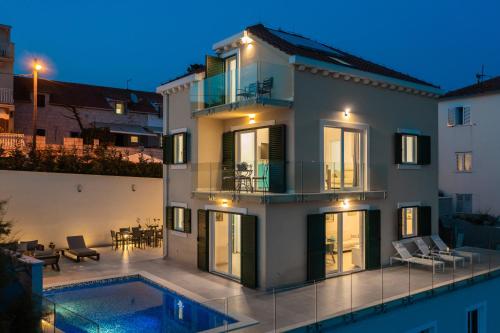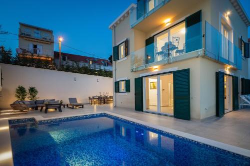 У помешканні Epetium Beach Villa, розташованому в місті Спліт, до послуг гостей номери з безкоштовним Wi-Fi та чудовим видом на місто. Також до послуг гостей сезонний відкритий басейн, сад та тераса. До послуг гостей цього помешкання на узбережжі балкон та безкоштовна приватна парковка.