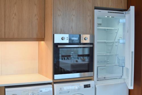 The full kitchen is fitted with a dishwasher, fridge and freezer unit. While the entertainment selection includes Smart TV function, Apple TV and Netflix services. There is a private bathroom with a shower.