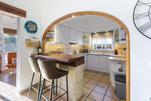 Це помешкання (вілла) з кондиціонером складається зі спалень (3), вітальнi, повністю обладнаної кухні з холодильником і кавоваркою, а також ванних кімнат (2) з душем та феном. Серед іншого тут до послуг гостей постільна білизна та рушники.