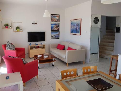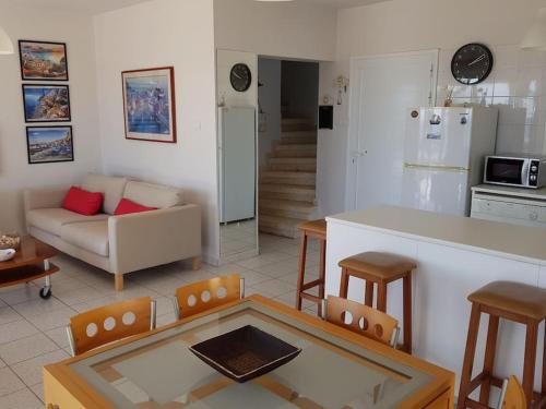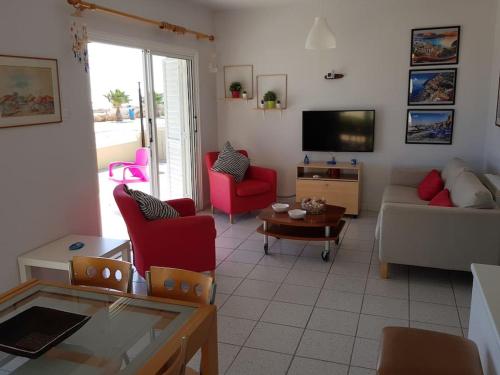 У помешканні On the beachfront, AYIA THEKLA, AGIA NAPA MARINA, розміщеному приблизно за 6 хв. ходьби від пам'ятки "Пляж Ліопетрі", до послуг гостей комфортне перебування з красивим видом на сад. Також до розпорядження гостей сад та патіо. На території цього помешкання на узбережжі до розпорядження гостей балкон, безкоштовна приватна парковка та безкоштовний Wi-Fi.