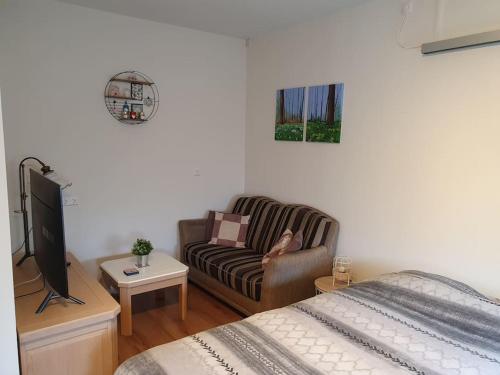 Це помешкання (будинок для відпочинку) з кондиціонером складається зі спалень (2) та повністю обладнаної кухні. З цього помешкання з виходом на терасу відкривається гарний вид на сад. Тут до послуг гостей постільна білизна та рушники.