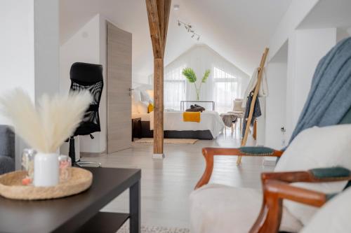 У помешканні Design Maisonette - 24h Self-Check-in - bis 7 Pers - Parkplatz - WiFi - Balkon -Terrasse - Radwege, розміщеному приблизно за 19 км від пам'ятки "Виставковий центр Saarmesse Fair", до послуг гостей комфортне розміщення з чарівним видом на сад. Також до розпорядження гостей балкон та чайник. До послуг гостей безкоштовний Wi-Fi, сад, тераса та ресторан.