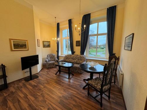 У помешканні Schloss Schmuggerow, яке розташовано в місті Schmuggerow, до послуг гостей сезонний відкритий басейн, фітнес-центр і сауна. З тераси відкривається чудовий вид на басейн та сад. На території цього помешкання облаштовано безкоштовну приватну парковку. Гостей запрошують пограти в більярд чи настільний теніс.