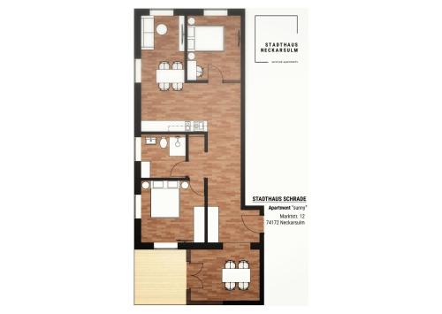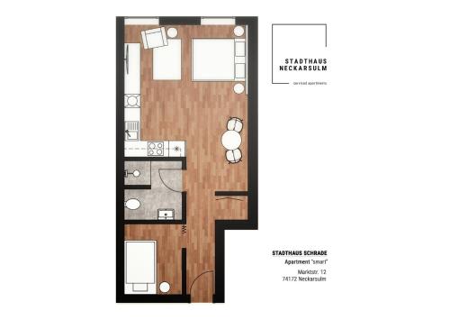 Помешкання Stadthaus Neckarsulm serviced apartments - Stadthaus Schrade розміщено в місті Неккарзульм, за 5,7 км від пам'ятки "Театр Гайльбронна" та за 5,8 км від пам'ятки "Ринкова площа Хайльбронна". До розпорядження гостей номери з телевізором із плоским екраном. Тут для зручності гостей є безкоштовний Wi-Fi на всій території помешкання. Також приватна парковка доступна на території помешкання.