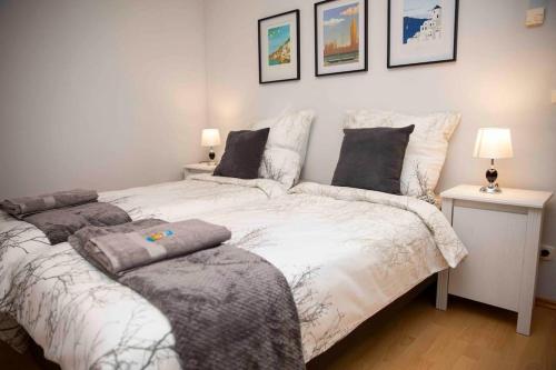 Апартаменти устатковано стількома спальнями (2), вітальнею та повністю обладнаною кухнею з холодильником та посудомийною машиною. У помешканні є постільна білизна та рушники.