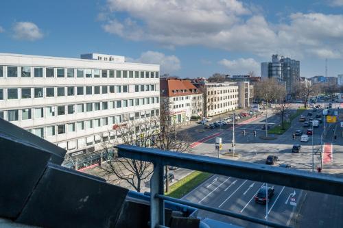 Помешкання Stylisches Penthouse zentral Tischfussball 100m2 Wii з чудовим видом на місто розташовано в центрі міста Ганновер, за 8 хв. ходьби від пам'ятки "Залізнична станція Ханофера" і за 1,8 км від пам'ятки "Конгрес-центр HCC Hannover". В помешканні до розпорядження гостей надається безкоштовний Wi-Fi. Помешкання розташовано в будівлі 1950 року побудови, за 3,8 км від пам'ятки "Озеро Машзее" та за 9 км від пам'ятки Арена TUI.