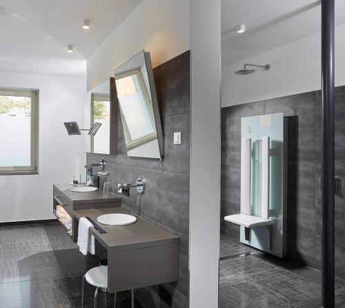Several rooms have a terrace or patio with direct access to the pool. The bathrooms are en-suite. Bathrobes as well as bath and sauna towels can be borrowed free of charge from the hotel reception.