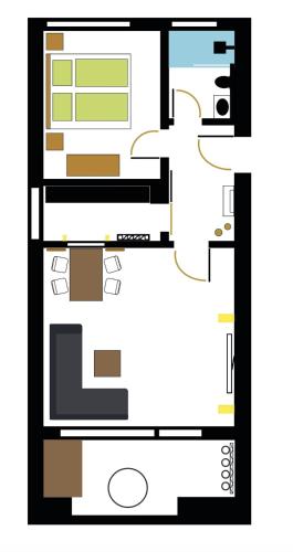 Апартаменти обладнано стількома спальнями (1), вітальнею та повністю обладнаною кухнею з холодильником та посудомийною машиною. Серед іншого тут для зручності гостей є постільна білизна та рушники.