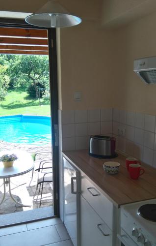 Помешкання Gartenblick з красивим видом на басейн розташовано в місті Броттероде. У розпорядженні гостей є приватний басейн та міні-кухня. Помешкання розміщено за 31 км від пам'ятки "Залізничний вокзал Айзенаха". Для зручності гостей тераса та безкоштовна приватна парковка.