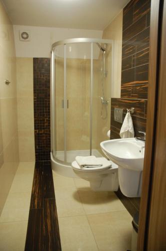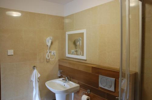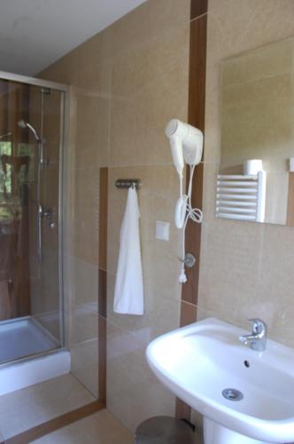 Повністю обладнану окрему ванну кімнату з душем укомплектовано феном.