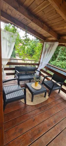 Це помешкання (будинок для відпочинку) з кондиціонером складається зі спалень (1) та повністю обладнаної кухні. З цього помешкання з прямим доступом на терасу відкривається гарний вид на сад. Серед іншого в помешканні до розпорядження гостей телевізор із плоским екраном із супутниковими каналами.