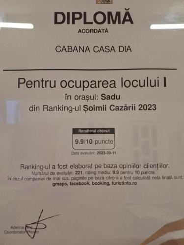 Гості можуть оглянути пам'ятку "Пасаж сходами" за 15 км від помешкання Cabana Casa Dia. Аеропорт (Міжнародний аеропорт Сібіу) розміщений за 16 км звідси.
