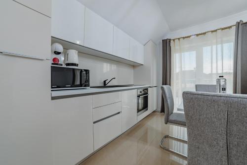 У декотрих варіантах розміщення передбачено кухню з холодильником, посудомийною машиною та духовкою.