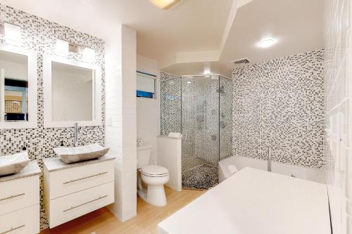 Це помешкання (будинок для відпочинку) з кондиціонером складається зі спалень (4), вітальнi, повністю обладнаної кухні з холодильником і кавоваркою, а також ванних кімнат (3) з душем або ванною та безкоштовними туалетно-косметичними засобами. У помешканні є постільна білизна та рушники.