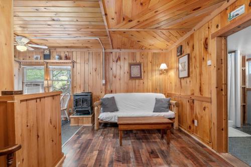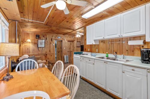 Each cottage at Hide-A-Way Waterfront Cottages includes a cable TV, full kitchen, and dining area. They also feature views of the lake and are decorated with rustic hardwood furnishings.