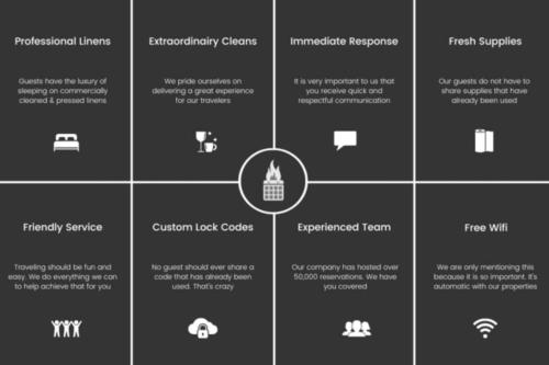 Для гостей помешкання The Skyline Manor передбачено спальні (4), кухню з холодильником та посудомийною машиною, пральну машину і ванні кімнати (4) з феном. Тут є телевізор.