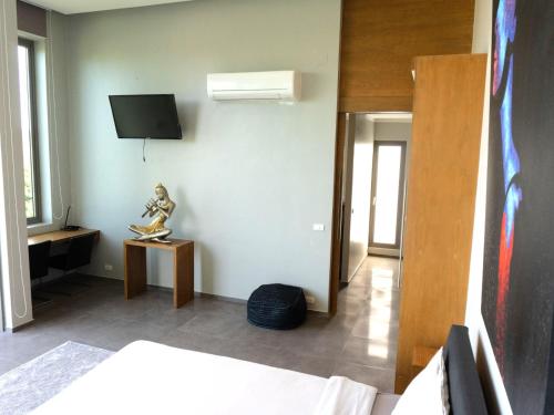 Це помешкання (вілла) з кондиціонером складається зі спалень (4), вітальнi, повністю обладнаної кухні з холодильником і кавоваркою, а також ванних кімнат (6) з душем та безкоштовними туалетно-косметичними засобами. У цьому помешканні до розпорядження гостей постільна білизна та рушники.