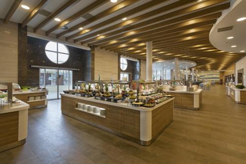 На території працює кілька ресторанів, де столики сервірують у приміщенні й надворі. Перед прийняттям сонячних ванн гості можуть перекусити або пообідати на терасі біля басейну. У ресторані Sultan з обслуговуванням по меню подають смачні страви на вечерю.