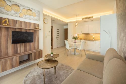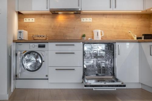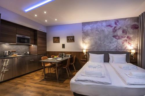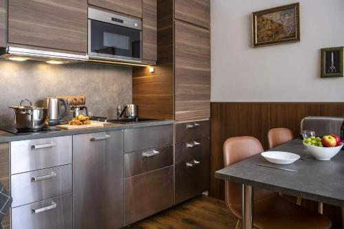 Гостям пропонують варіанти розміщення з повністю обладнаною кухнею з обіднім столом та телевізором із плоским екраном із супутниковими каналами. Окрему ванну кімнату з душем укомплектовано безкоштовними туалетно-косметичними засобами і феном. Тут до послуг гостей холодильник, посудомийна машина, духовка, а також кавоварка та чайник.