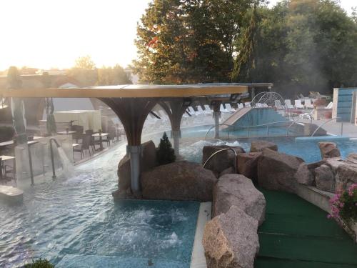 У помешканні Spa Residence Carbona Hévíz - Relax, Sissi Apartmanok, яке розташовано в місті Хевіз, гостям пропонують номери з чудовим видом на місто. За 8 хв. ходьби звідси можна оглянути пам'ятку "Термальне озеро Хевіз", а за 26 км – пам'ятку "Фортеця Шюмег". Тут до послуг гостей безкоштовний Wi-Fi, сад з цілорічним відкритим басейном, а також критий басейн і сауна. У помешканні гостям пропонують номери з кондиціонером, які оснащено гідромасажною ванною.