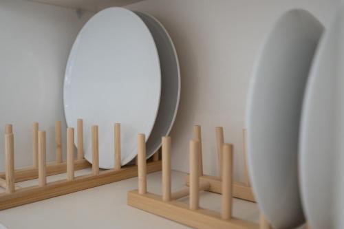 • Усі тарілки, склянки та інший посуд продезінфіковано