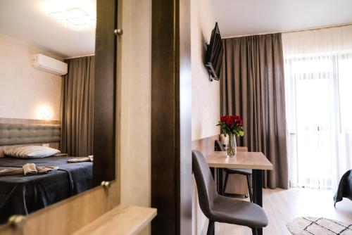 All rooms are fitted with air conditioning, a flat-screen TV with satellite channels, a fridge, a kettle, a shower, free toiletries and a wardrobe. The rooms include a private bathroom fitted with a bath and a hairdryer, while some rooms are fitted with a kitchenette equipped with a stovetop. At the inn each room is fitted with bed linen and towels.