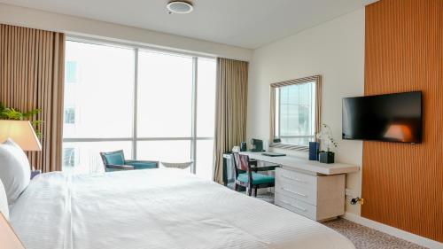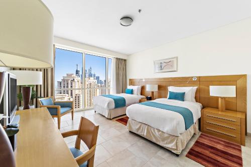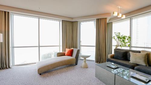 Step into spacious rooms and suites at Blue Beach Tower, each adorned with floor-to-ceiling windows offering breathtaking views of the sea, the iconic Ferris Wheel, or Dubai's dazzling skyline.