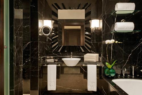 The modern rooms and suites include 42-inch flat-screen TVs and floor-to-ceiling windows. The marble bathroom comes with Byredo amenities, a soaking tub and rain shower. Some rooms offer a balcony and Club Lounge access.