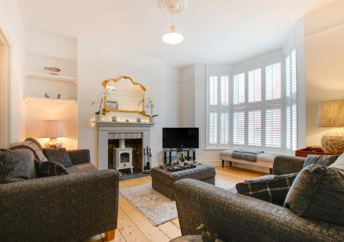 The holiday home has 3 bedrooms, 2 bathrooms, bed linen, towels, a TV, a fully equipped kitchen, and a patio with garden views. The accommodation offers a fireplace.