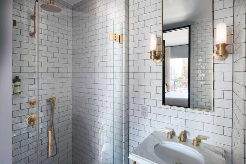 The rooms come with 10-foot window views of Manhattan or Brooklyn. Many rooms offer a private balcony. All furnishings are custom designed by Michaelis Boyd Studio. The marble and brass bathrooms feature fixtures by Waterworks and toiletries by Apotheke, which handmade in Brooklyn.