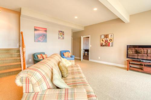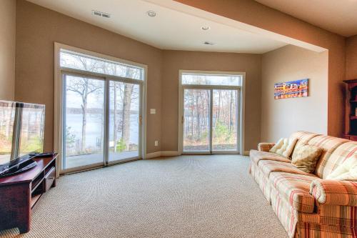 The spacious holiday home with a balcony and lake views features 4 bedrooms, a living room, a TV, an equipped kitchen with a dishwasher and an oven, and 3 bathrooms with a walk-in shower. Towels and bed linen are featured in the holiday home. The property has an outdoor dining area.