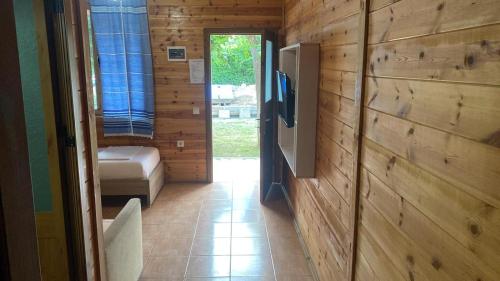 房间铺有镶木地板,配有带冰箱的设施齐全的小厨房、用餐区、平板电视以及带淋浴设施和吹风机的私人浴室。