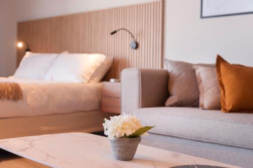 这家空调公寓配有1间卧室、起居室、带冰箱和咖啡机的设施齐全的厨房以及1间带坐浴盆和淋浴设施的浴室。这家公寓还配备休息区、洗衣机以及1间带免费洗浴用品的浴室。
