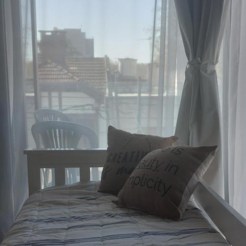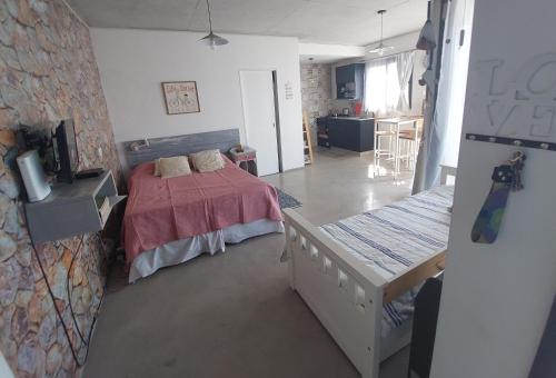 Luminoso y comfortable monoambienteA 25 minutos de Ezeiza享有花园景,提供阳台和咖啡机,距离糖果盒球场约有14公里。这家住宿配备免费WiFi,还拥有烧烤设施。