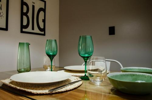 这家公寓享有市景,配有1间卧室以及1间带免费洗浴用品和吹风机的浴室。这家空调公寓还提供平板电视、带冰箱的设施齐全的厨房、休息区、洗衣机以及1间带坐浴盆、淋浴设施和浴缸的浴室。