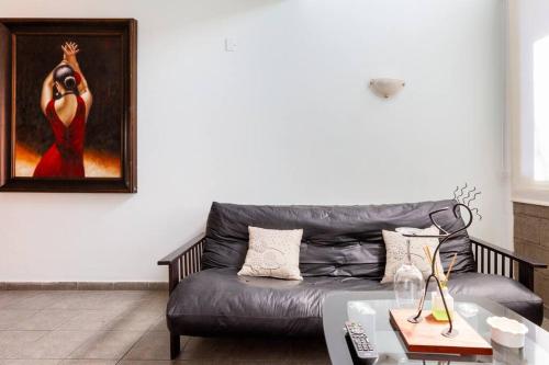 这家空调公寓配有1间卧室、起居室、带冰箱和咖啡机的设施齐全的厨房以及1间带坐浴盆和淋浴设施的浴室。1间浴室配有浴缸,也配有吹风机,提供毛巾和床上用品。