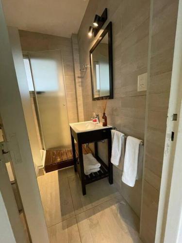 这家空调公寓配有1间卧室、起居室、带冰箱和咖啡机的设施齐全的厨房以及1间带坐浴盆和免费洗浴用品的浴室。1间浴室配有浴缸,也配备吹风机,提供毛巾和床上用品。