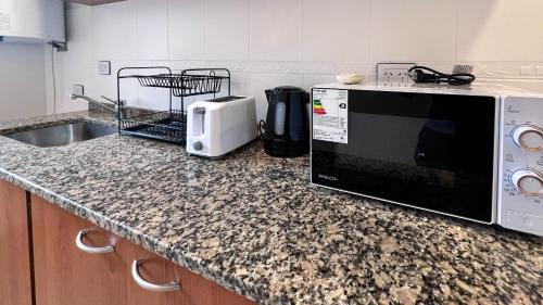 这家空调公寓提供1间卧室,配有1间带坐浴盆、淋浴设施和免费洗浴用品的浴室。这家公寓也配有休息区、1间浴室以及带冰箱、烤箱和微波炉的设施齐全的厨房。