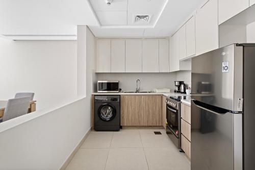 这家公寓拥有1间卧室、带有线频道的平板电视、带冰箱和烤箱的设施齐全的厨房、洗衣机以及1间带浴缸或淋浴设施的浴室。1间浴室提供吹风机。