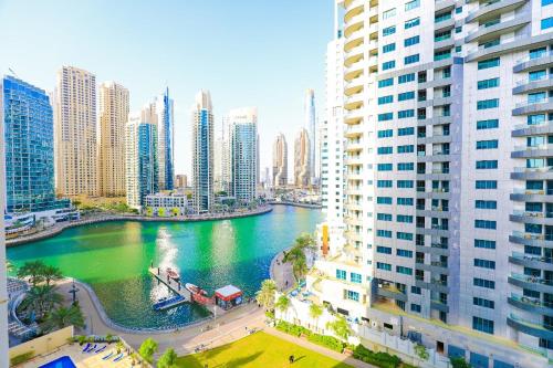 Elegant Marina View Studio King Bed位于迪拜,配备私人泳池,享有池景。这家公寓配备免费私人停车位、24小时前台和免费WiFi。