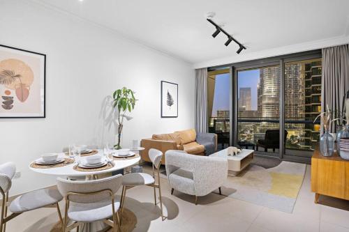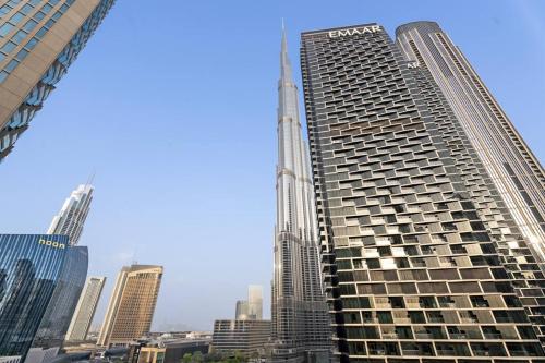 FIRST CLASS 1BR Iconic Cityscape Haven地理位置超棒,位于迪拜中心,提供阳台。这家住宿距离哈利法塔有5分钟步行路程,提供户外游泳池和免费私人停车位。